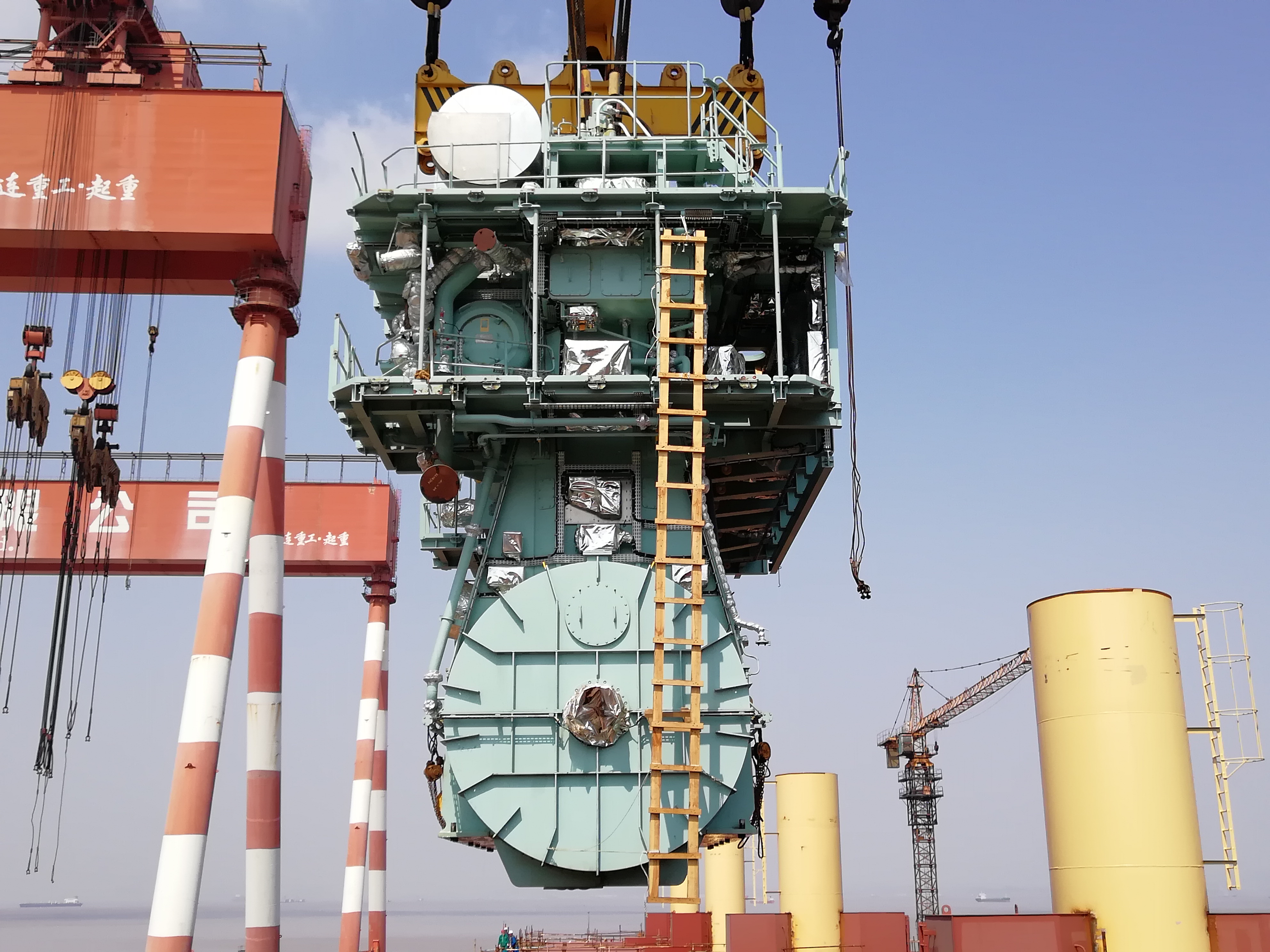 進入3月中旬,趁著難得的大好天氣,東海岸公司積極組織,在一周內(nèi)完成兩次主機吊裝的重要節(jié)點,為塢內(nèi)周期搶抓時間節(jié)點。