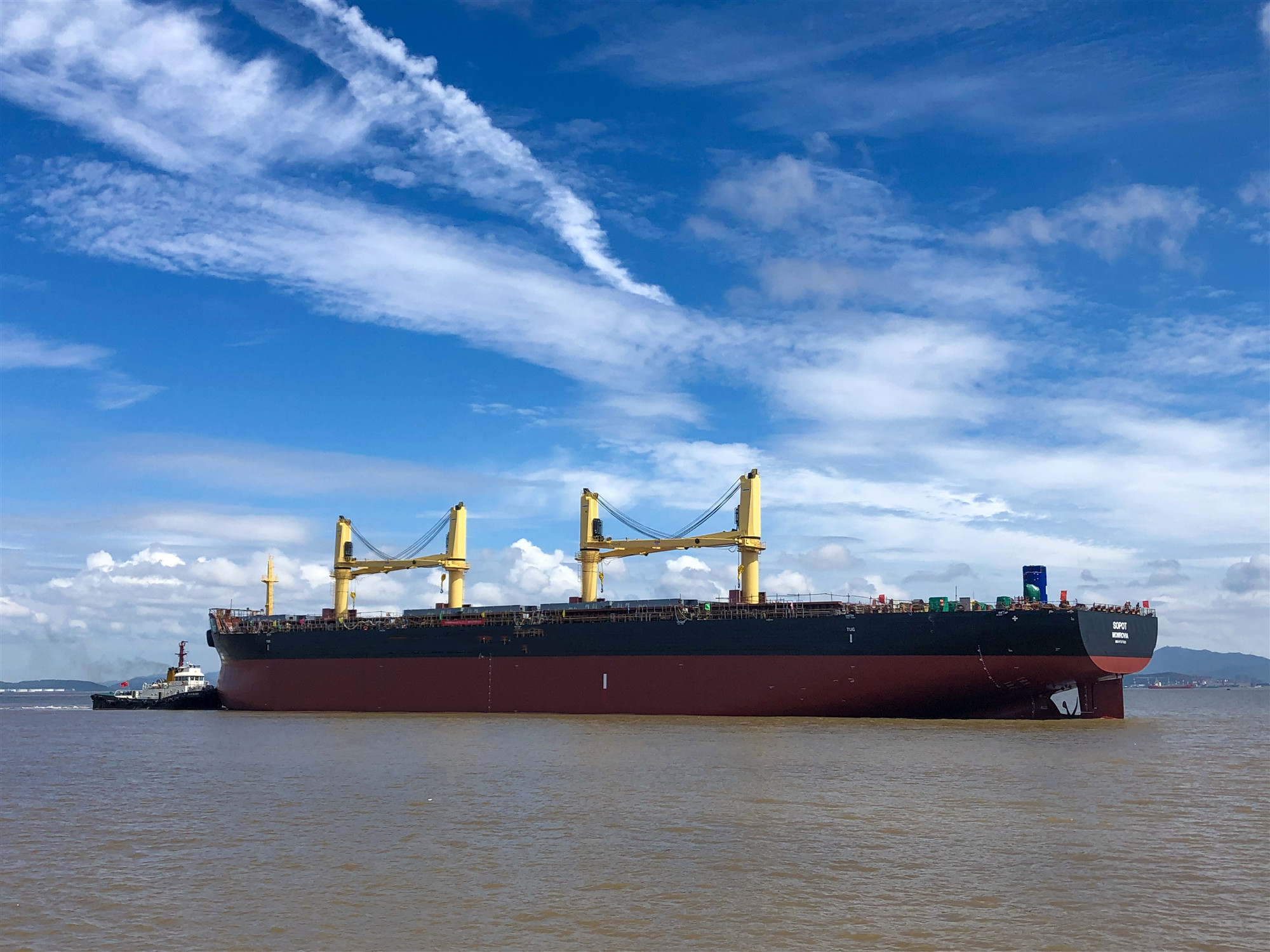 2019年8月3日上午,揚帆集團下屬浙江東海岸船業(yè)有限公司船臺在建的一艘38520噸系列散貨船順利實現(xiàn)下水。