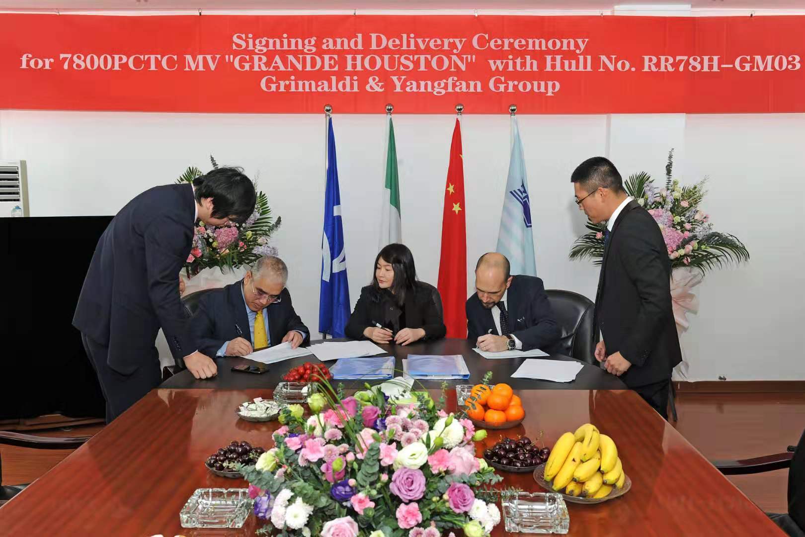 揚(yáng)帆集團(tuán)一艘7800PCTC船簽字交付