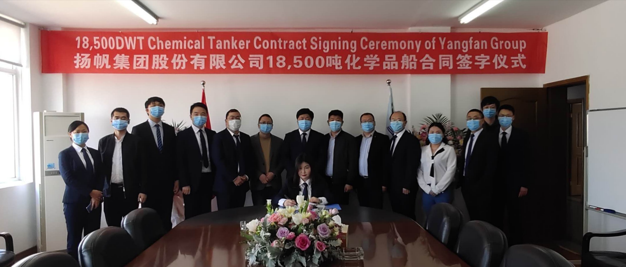 2020年4月9日,揚(yáng)帆集團(tuán)與一家國外船東簽署一艘18500DWT化學(xué)品船建造合同。該船型長164.34米、寬23米、設(shè)計(jì)吃水9.55米。