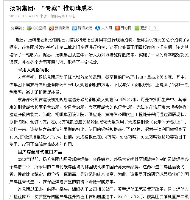 船舶與海工:揚(yáng)帆集團(tuán):“專案”推動降成本