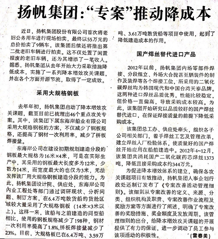 《中國船舶報》第39期:揚帆集團(tuán):“專案”推動