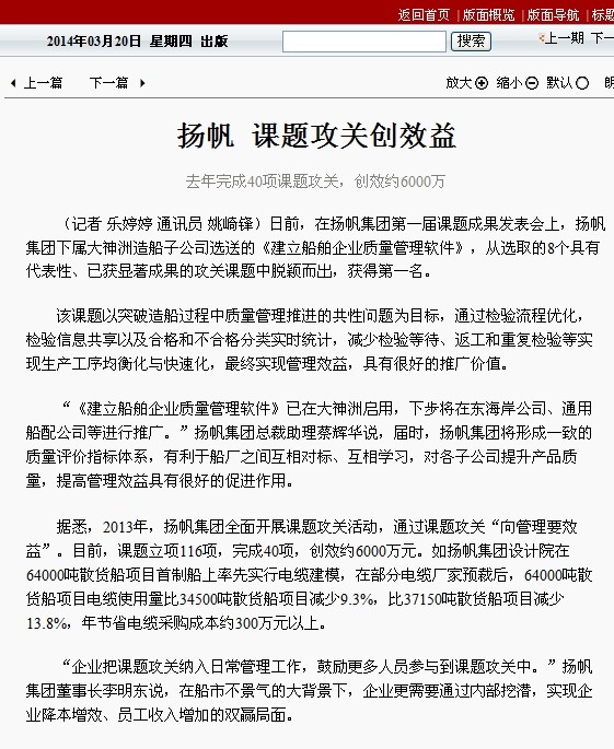 《今日普陀》2014年03月20日 揚帆課題攻關(guān)創(chuàng)效益